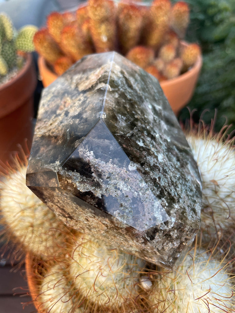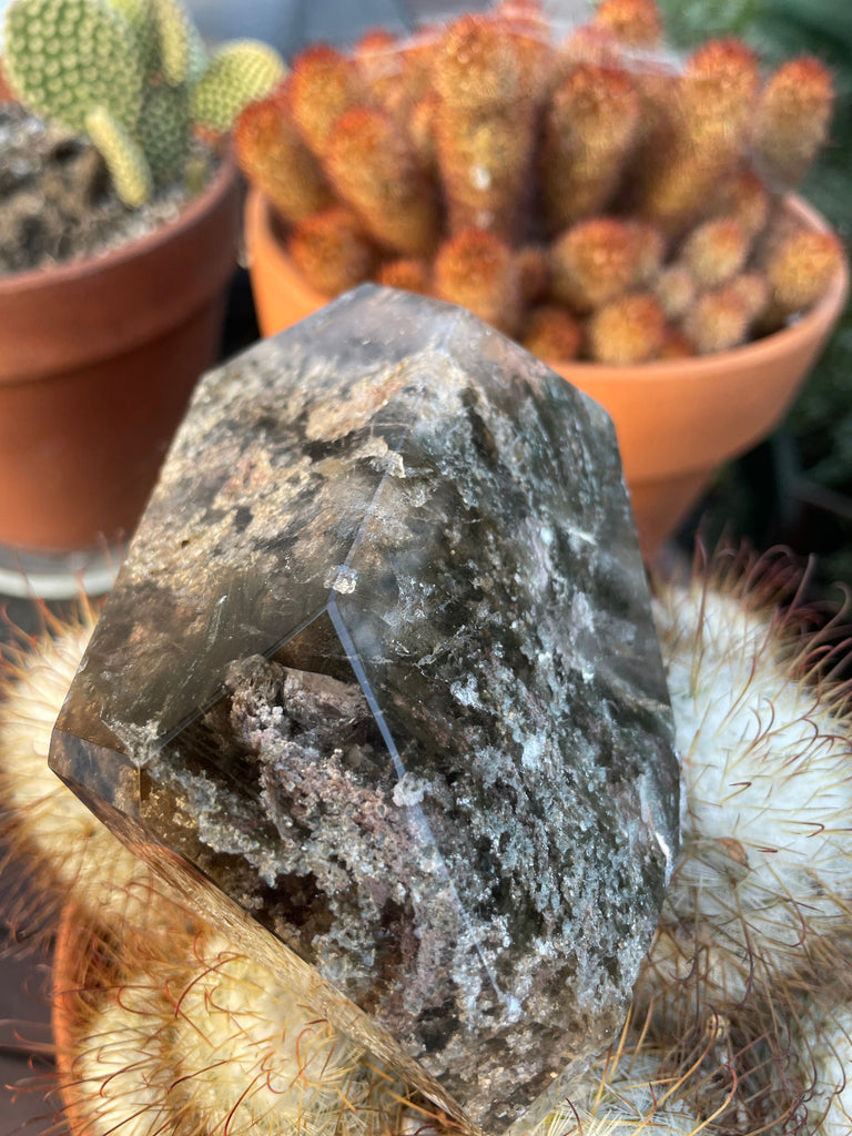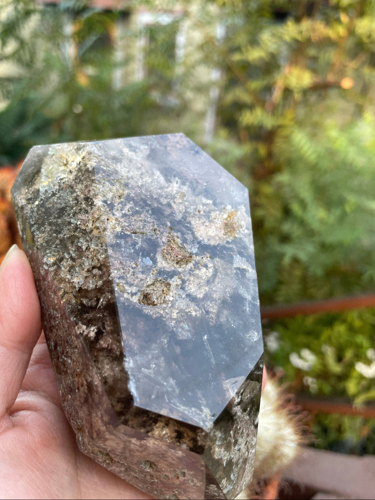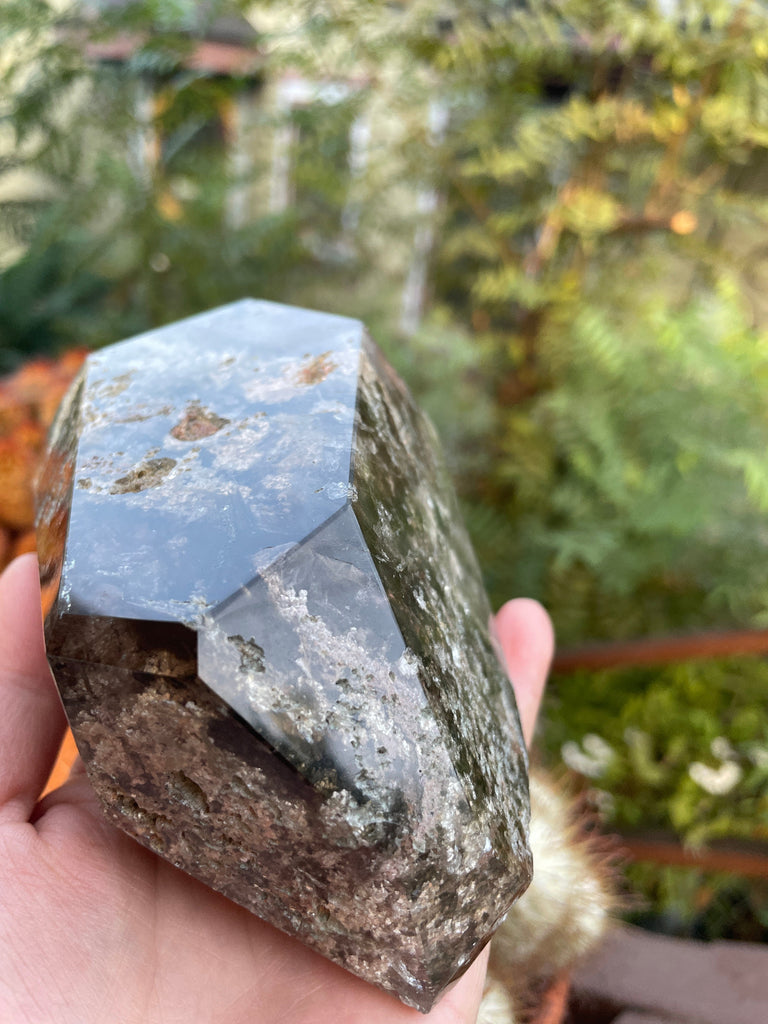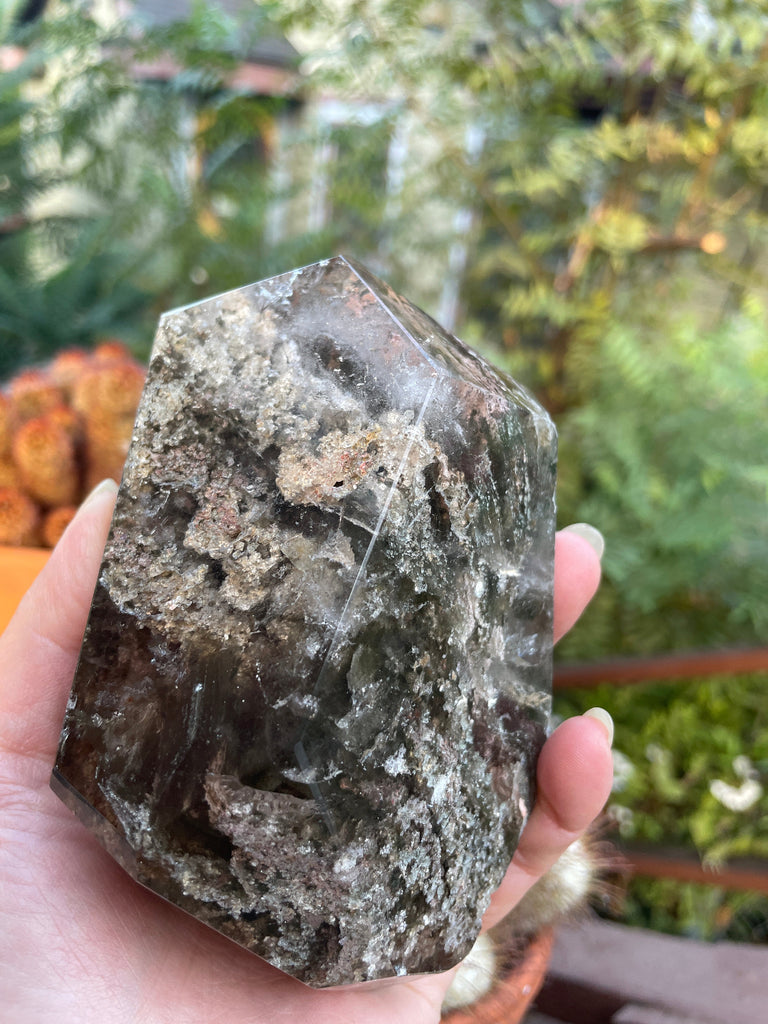 Lodolite, also known as Garden Quartz or the "Shamanic Dream Stone," is a type of Clear Quartz with unique mineral inclusions that resemble landscapes and gardens. Spiritually, it's associated with transformation, healing, and accessing higher realms. It facilitates meditation, past-life recall, and spiritual journeying, promoting emotional healing, clarity, and connection to nature spirits and guides.